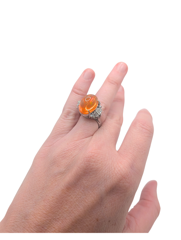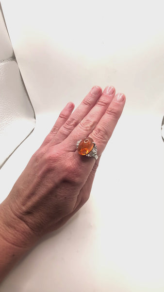 Fire opal and diamond ring